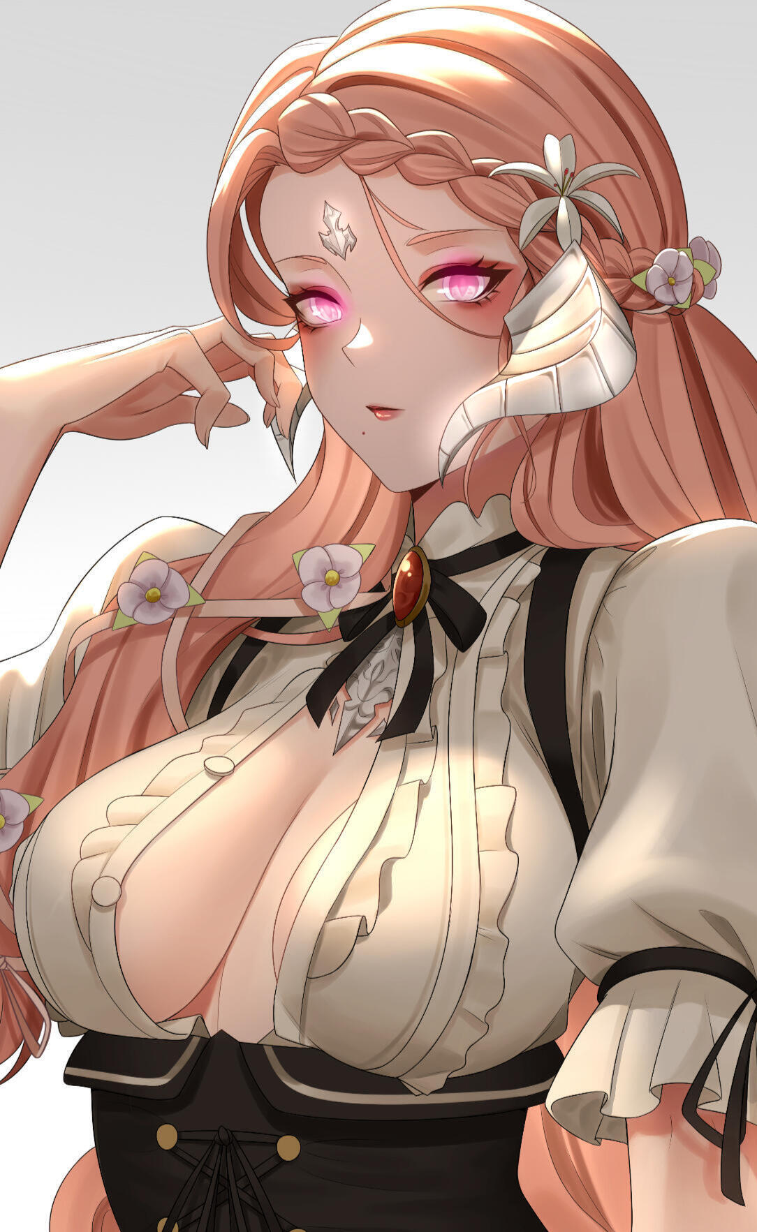 | eyes | vibrant moonstones, a soft and inviting pink hue, combined with shiny silver who sees all |